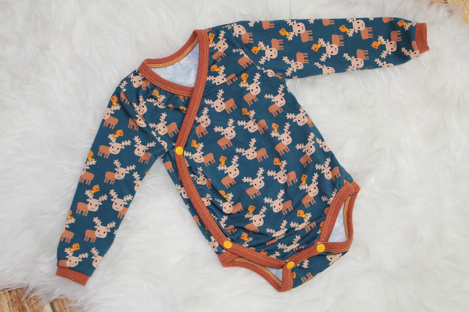 Ich habe mal wieder Wickelbodys genäht. Ja, ich kann auch andere Schnittmuster. Aber mein Baby trägt nun mal viel Wickelbodys. Mittlerweile habe ich sogar schon den nächsten Schwung fertig, aber der Vollständigkeit halber gibt es heute dann erst diese in Größe 62.